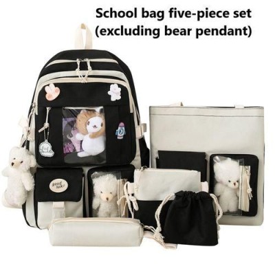 5PCS Backpack Set Youth High Durable Quality School Bag ,Boys/Girls Waterproof School /Laptop Backpack(Excluding Pendants)-Black